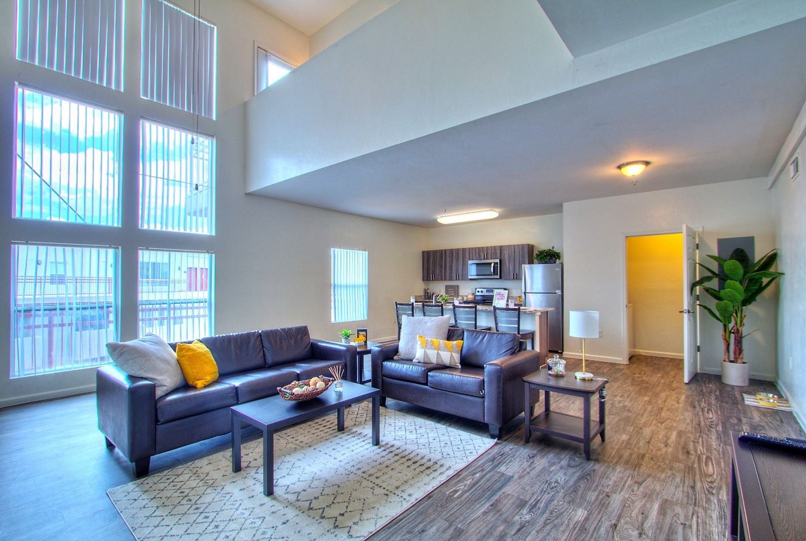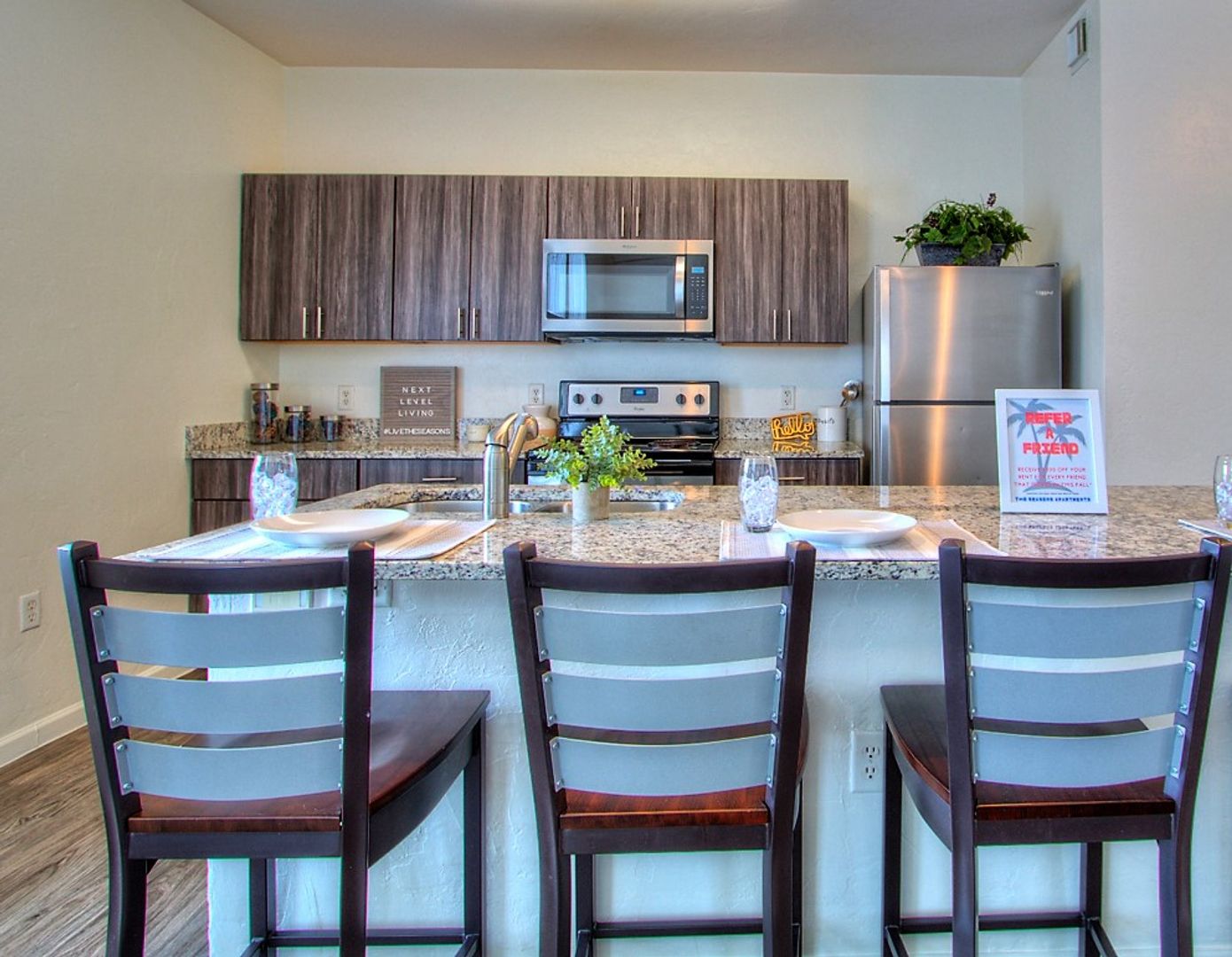 Each fully furnished, recently remodeled apartment includes not just your living room and bedroom furniture, but also 50" 4K Samsung TVs, stainless steel appliances, sleek granite countertops, an in-unit washer and dryer, and updated hard surface flooring.